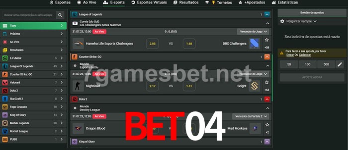 A aposta Bet04 oferece aos jogadores a experiência mais conveniente de apostas em eSports!